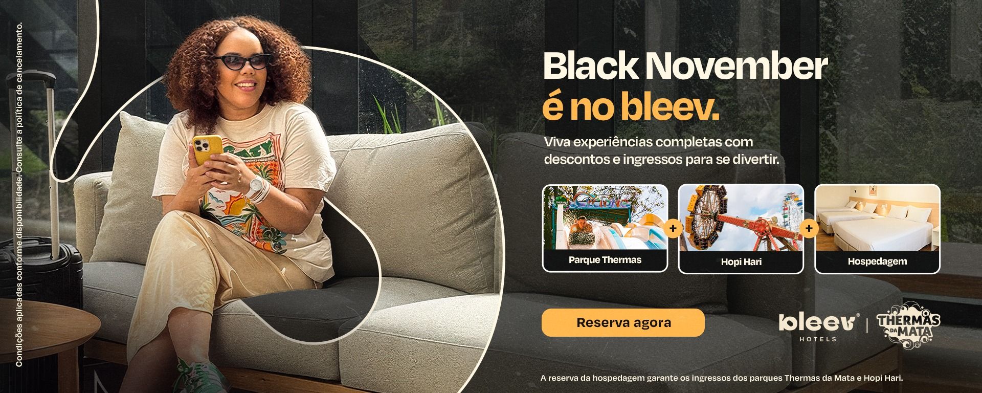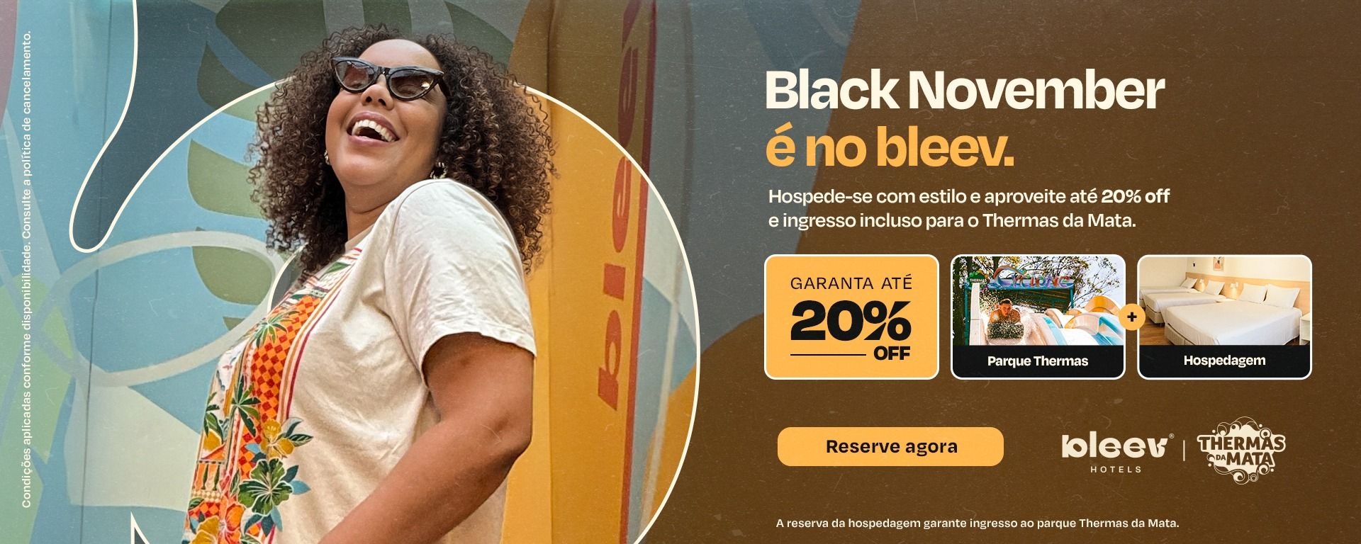 O Hotel Bleev Thermas da Mata está localizado em Cotia-SP, dentro do Parque Aquático Thermas da Mata, oferecendo uma experiência única de conforto e lazer em meio à natureza. Ideal para famílias, casais e grupos de amigos, o hotel conta com suítes amplas e chalés, todos equipados com ar-condicionado, Smart TV, frigobar e cofre.